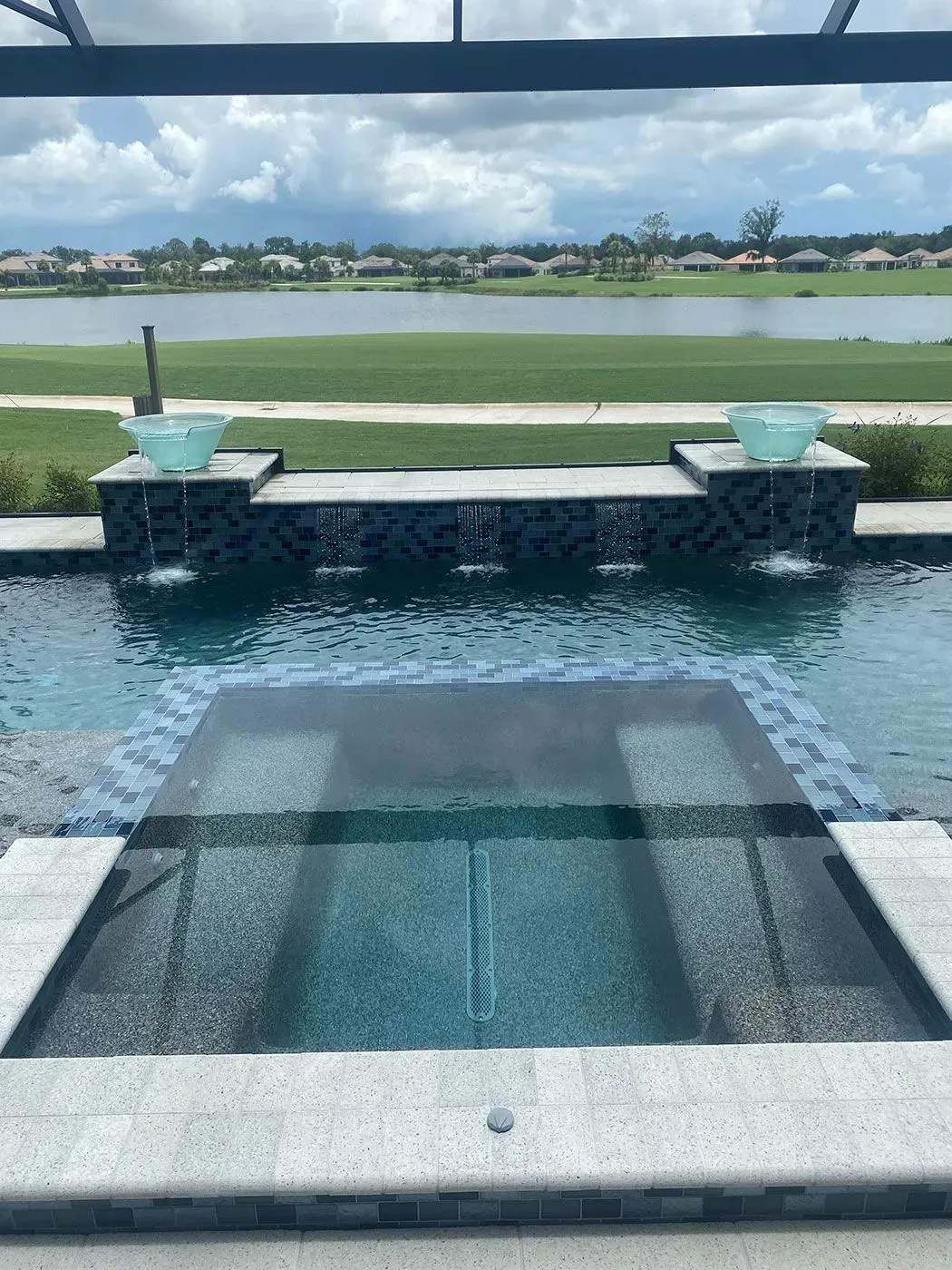- Specialty high-end features like vanishing edges, LED bubblers, rain curtains, and mosaics